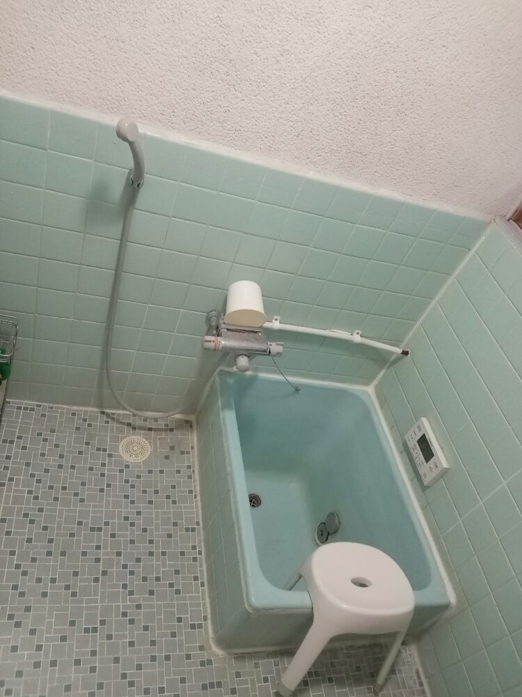 昔ながらのタイル張りの在来工法の浴室でした。