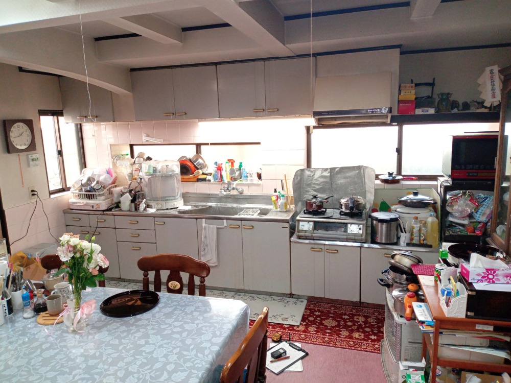 長年使用されてきたキッチンは、汚れがこびりついて、掃除がしにくい状態でした。
